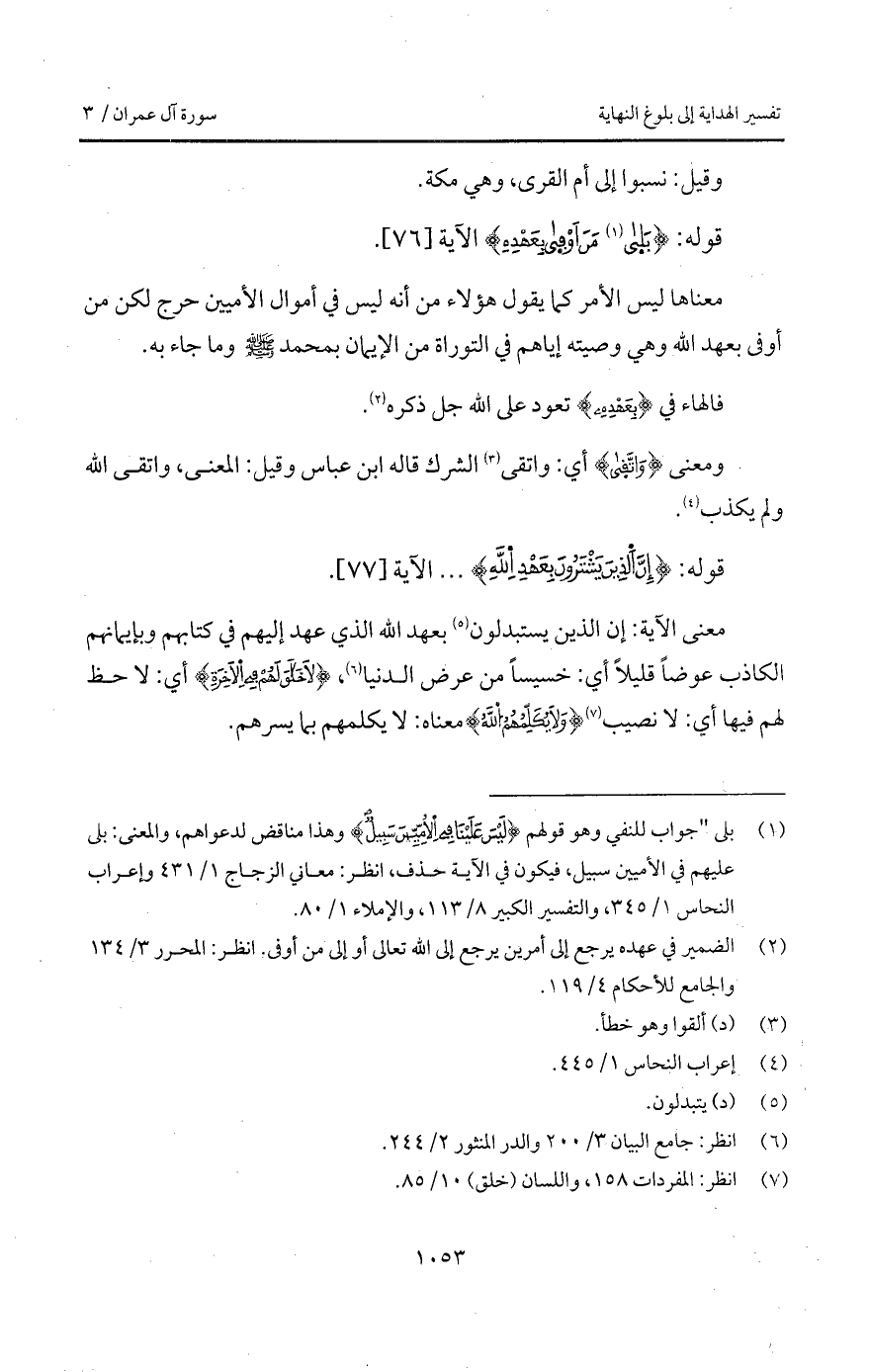 معناها ليس الأمر كما يقول هؤلاء من أنه ليس في أموال الأميين حرج لكن من أوفى بعهد الله وهي وصيته إياهم في التوراة من الإيمان بمحمد A وما جاء به.