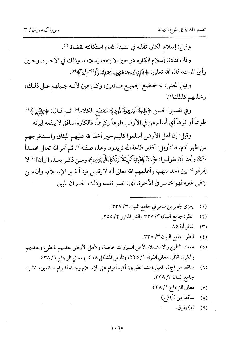 وقال قتادة: إسلام الكاره هو حين لا ينفعه إسلامه، وذلك في الآخرة، وحين رأى الموت، قال الله تعالى: {فَلَمْ يَكُ يَنفَعُهُمْ إِيمَانُهُمْ لَمَّا رَأَوْاْ بَأْسَنَا} [غافر: 85].