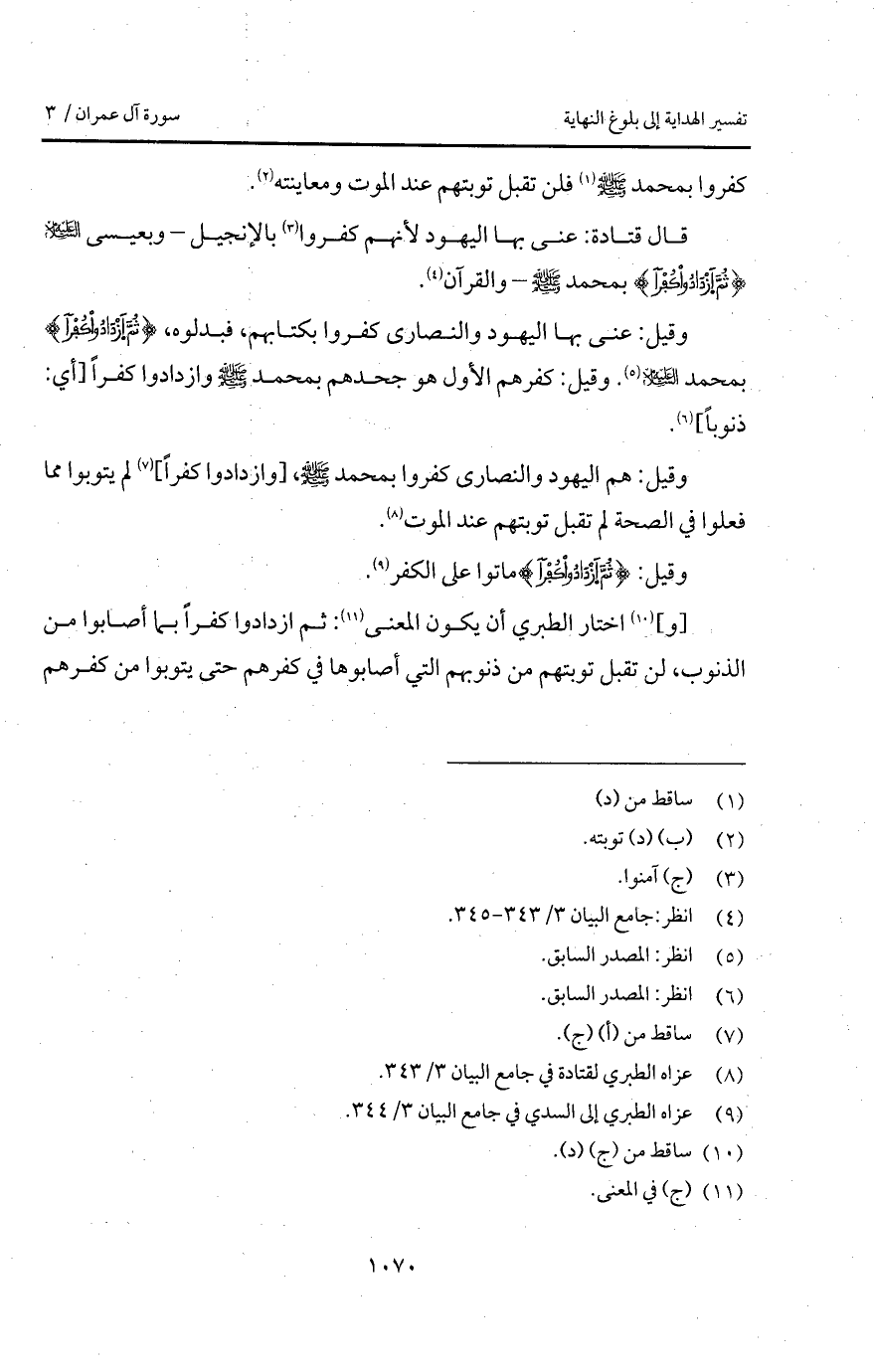 [و] اختار الطبري أن يكون المعنى: ثم ازدادوا كفراً بما أصابوا من الذنوب، لن تقبل توبتهم من ذنوبهم التي أصابوها في كفرهم حتى يتوبوا من كفرهم