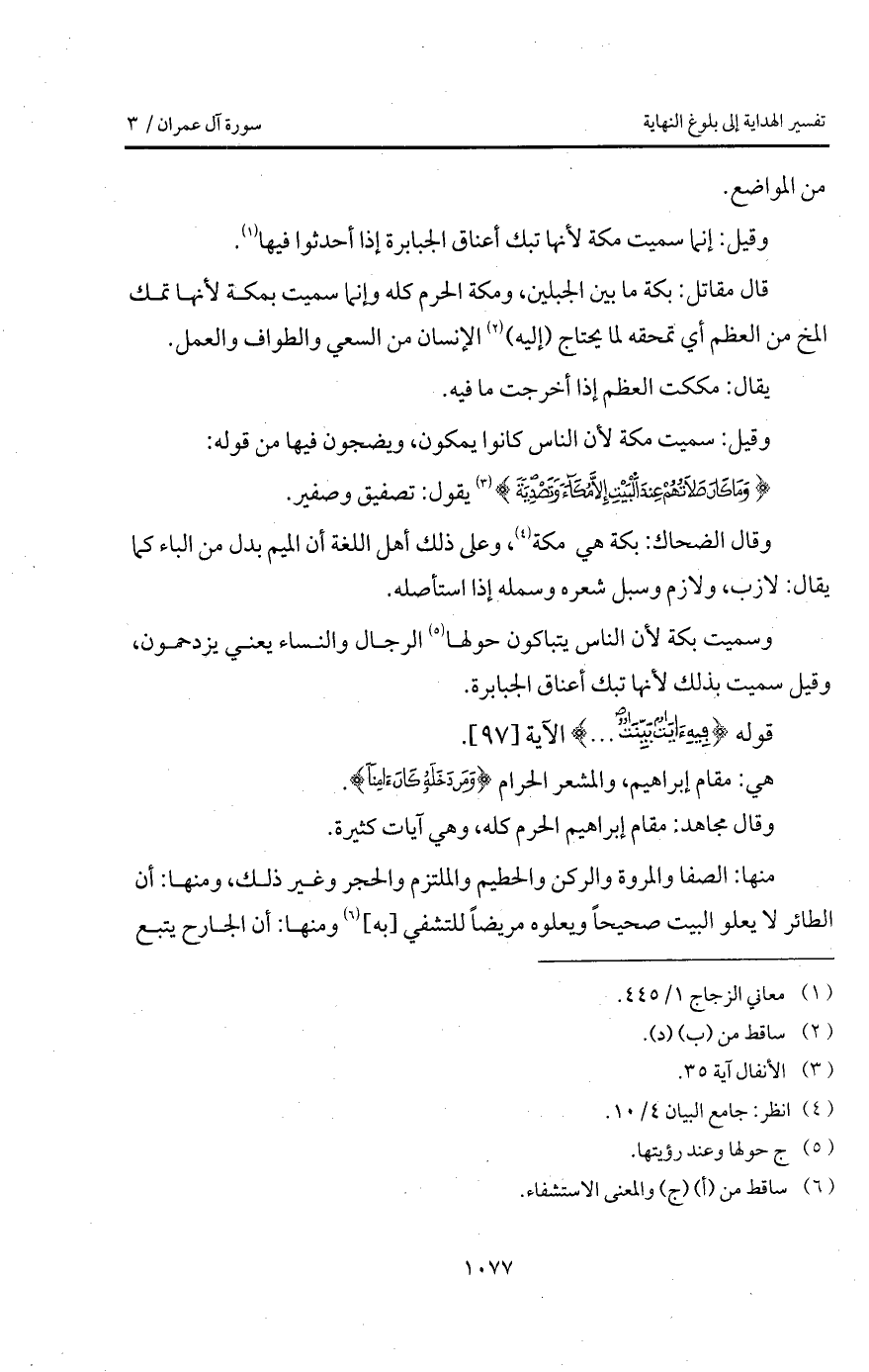 قال مقاتل: بكة ما بين الجبلين، ومكة الحرم كله وإنما سميت بمكة لأنها تمك المخ من العظم أي تمحقه لما يحتاج (إليه) الإنسان من السعي والطواف والعمل.