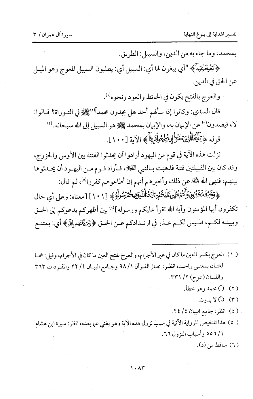 نزلت هذه الآية في قوم من اليهود أرادوا أن يحدثوا الفتنة بين الأوس والخزرج، وقد كان بين القبيلتين فتنة فذهبت بالنبي عليه السلام، فأراد قوم من اليهود أن يحدثوها بينهم، فنهى الله D عن ذلك وأخبرهم أنهم إن أطاعوهم كفروا، ثم قال: