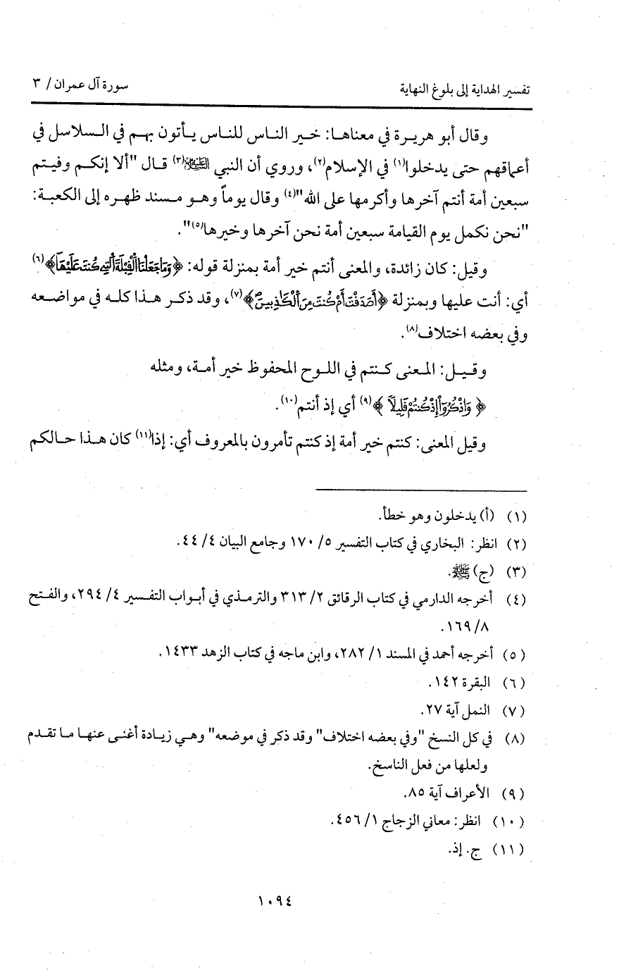 وقال أبو هريرة في معناها: خير الناس للناس يأتون بهم في السلاسل في أعماقهم حتى يدخلوا في الإسلام، وروي أن النبي عليه السلام قال " ألا إنكم وفيتم سبعين أمة أنتم آخرها وأكرمها على الله " وقال يوماً وهو مسند ظهره إلى الكعبة: " نحن نكمل يوم القيامة سبعين أمة نحن آخرها وخيرها ".