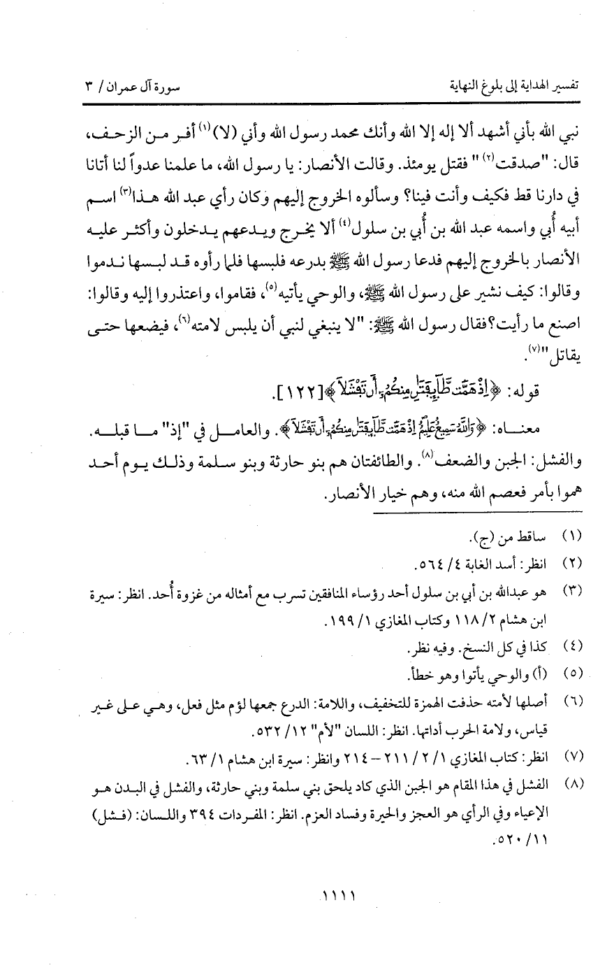 قوله: {إِذْ هَمَّتْ طَّآئِفَتَانِ مِنكُمْ أَن تَفْشَلاَ}.
