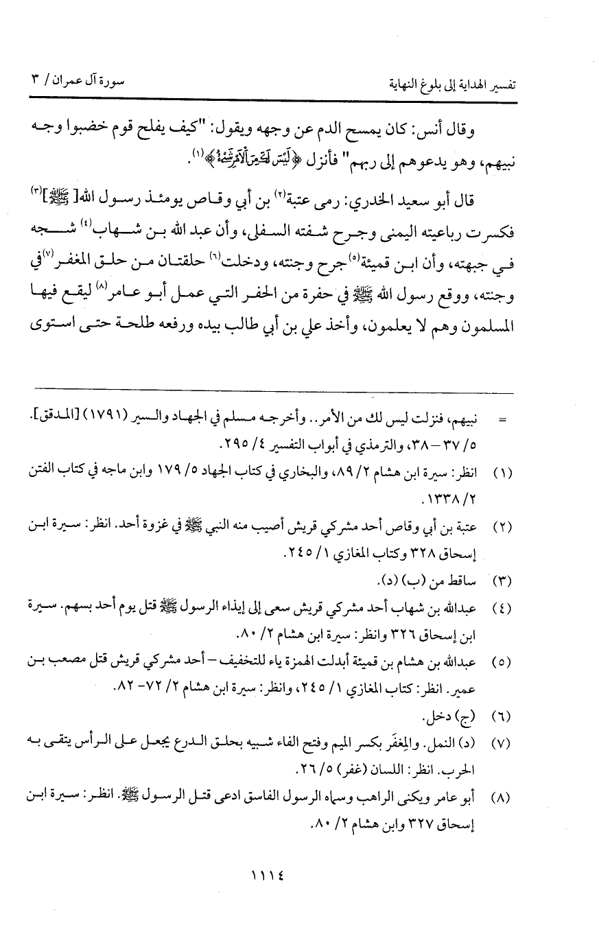 وقال أنس: كان يمسح الدم عن وجهه ويقول: " كيف يفلح قوم خضبوا وجه نبيهم، وهو يدعوهم إلى ربهم " فأنزل {لَيْسَ لَكَ مِنَ الأمر شَيْءٌ}.