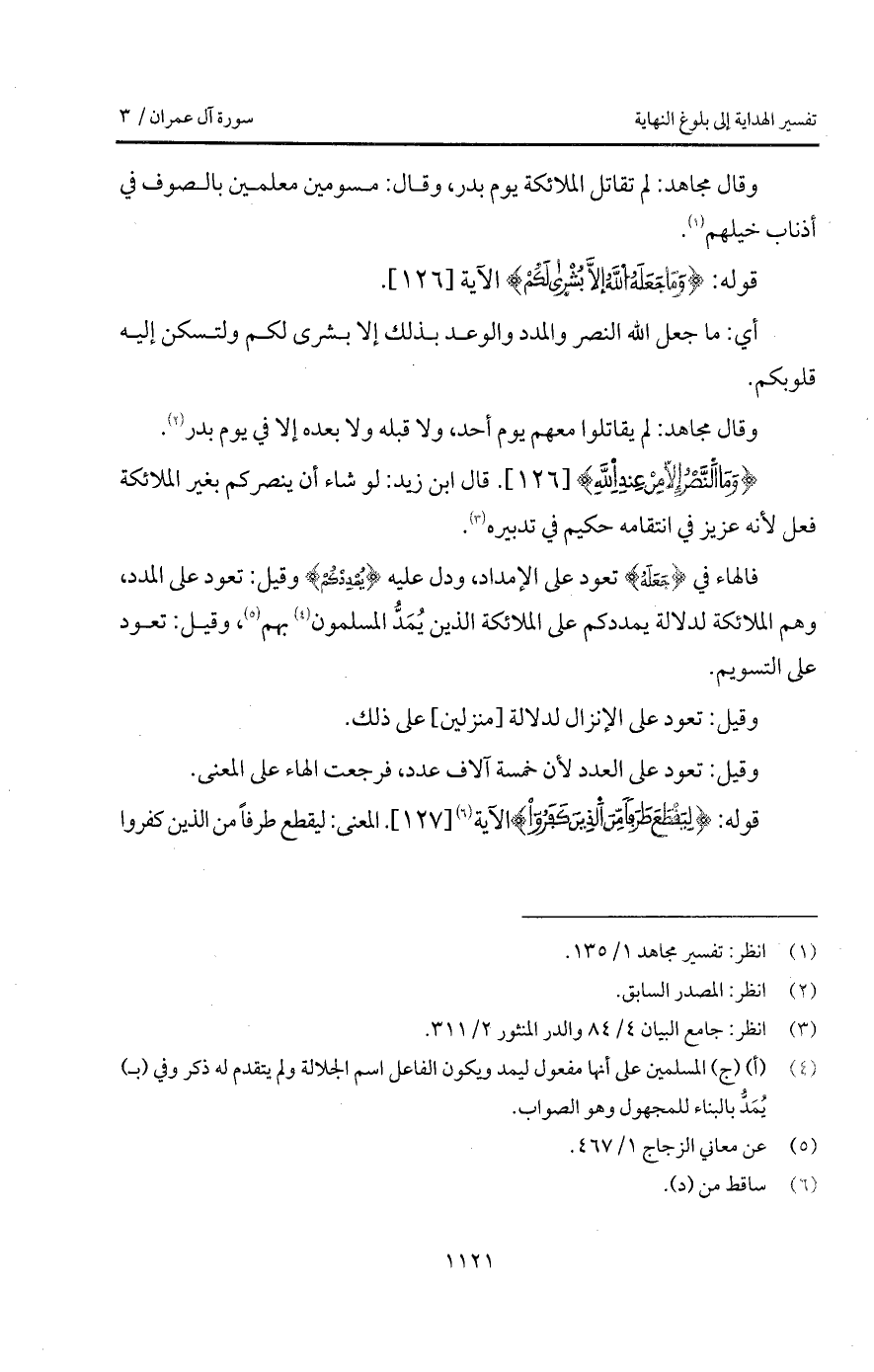 وقال مجاهد: لم تقاتل الملائكة يوم بدر، وقال: مسومين معلمين بالصوف في أذناب خيلهم.