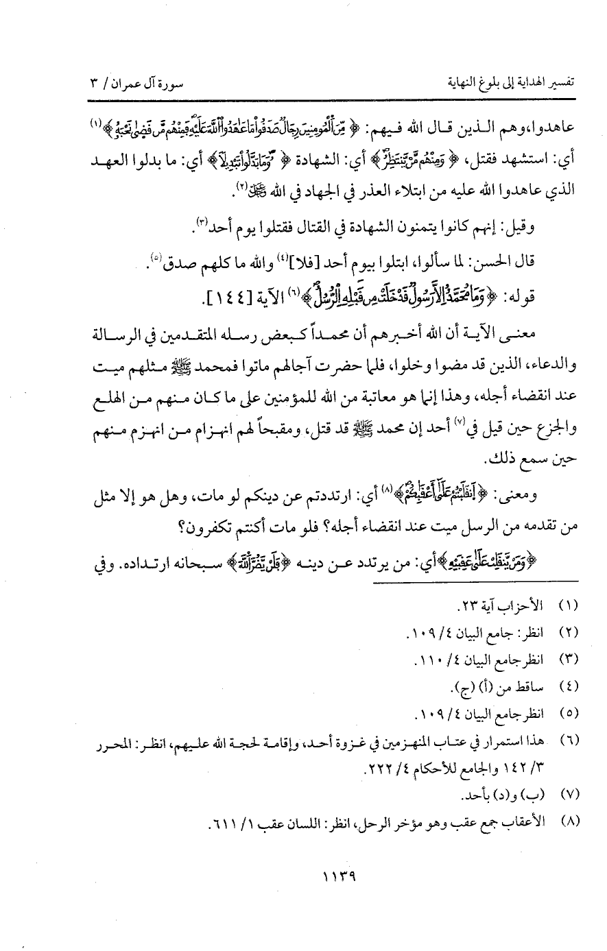 معنى الآية أن الله أخبرهم أن محمداً كبعض رسله المتقدمين في الرسالة والدعاء، الذين قد مضوا وخلوا، فلما حضرت آجالهم ماتوا فمحمد A مثلهم ميت عند انقضاء أجله، وهذا إنما هو معاتبة من الله للمؤمنين على ما كان منهم من الهلع والجزع حين قيل فب أحد إن محمد A قد قتل، ومقبحاً لهم انهزام من انهزم منهم حين سمع ذلك.