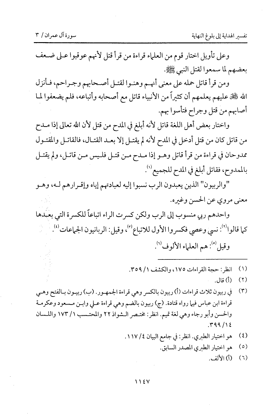 ومن قرأ قاتل حمله على معنى أنهم وهنوا لقتل أصحابهم وجراحم، فأنزل الله D عليهم يعلمهم أن كثيراً من الأنبياء قاتل مع أصحابه وأتباعه، فلم يضعفوا لما أصابهم من قتل وجراح فتأسوا بهم.