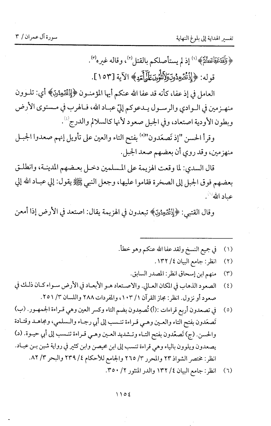 قوله: {إِذْ تُصْعِدُونَ وَلاَ تَلْوُونَ على أحَدٍ} الآية.