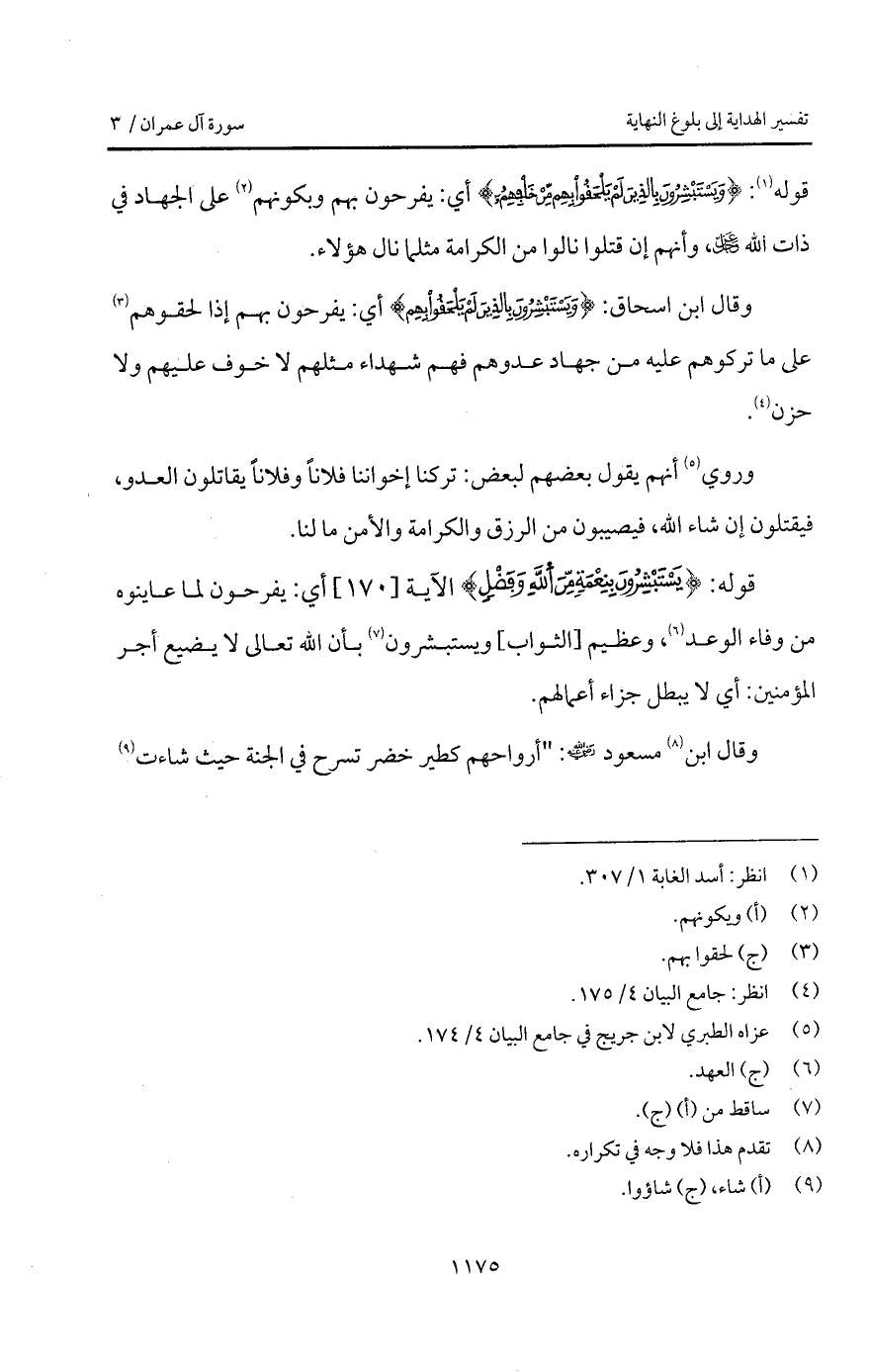 وقال ابن مسعود Bهـ: " أرواحهم كطير خضر تسرح في الجنة حيث شاءت