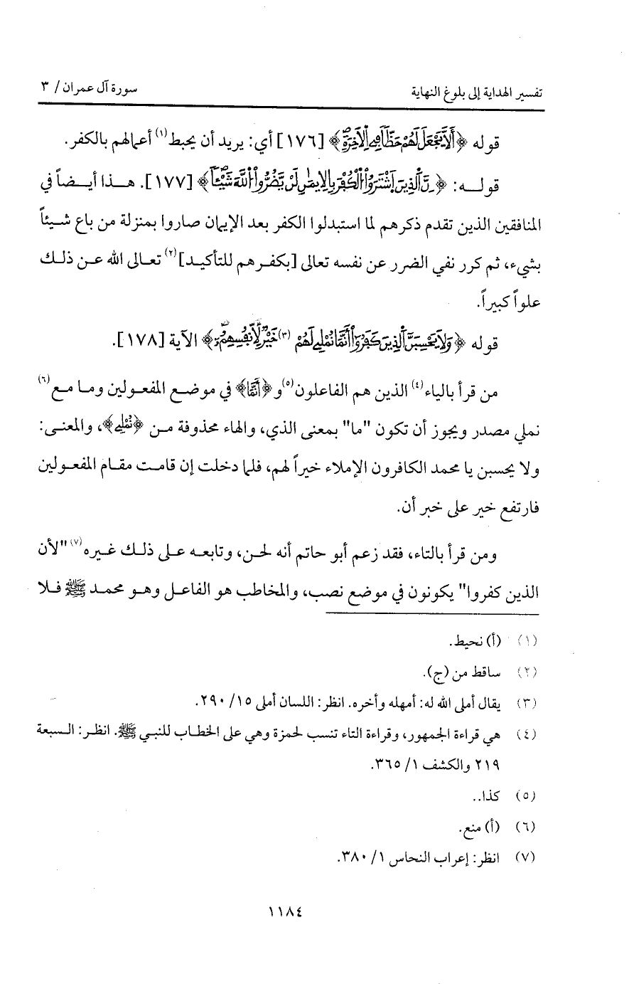 قوله {وَلاَ يَحْسَبَنَّ الذين كَفَرُواْ أَنَّمَا نُمْلِي لَهُمْ خَيْرٌ لأَنْفُسِهِمْ} الآية.