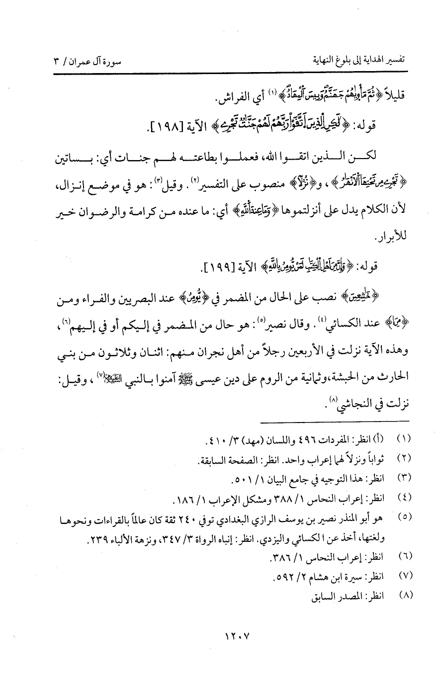 {خاشعين} نصب على الحال من المضمر في {يُؤْمِنُ} عند البصريين والفراء ومن {مِنْ} عند الكسائي. وقال نصير: هو حال من المضمر في إليكم أو في إليهم، وهذه الآية نزلت في الأربعين رجلاً من أهل نجران منهم: اثنان وثلاثون من بني الحارث من الحبشة، وثمانية من الروم على دين عيسى A آمنوا بالنبي عليه السلام، وقيل: نزلت في النجاشي.
