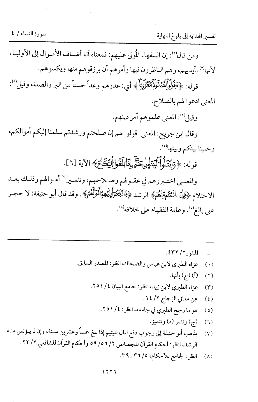 ومن قال: إن السفاهء المُولى عليهم: فمعناه أنه أضاف الأموال إلى الأولياء لأنها بأيديهم، وهم الناظرون فيها وأمرهم أن يرزقوهم منها ويكسوهم.