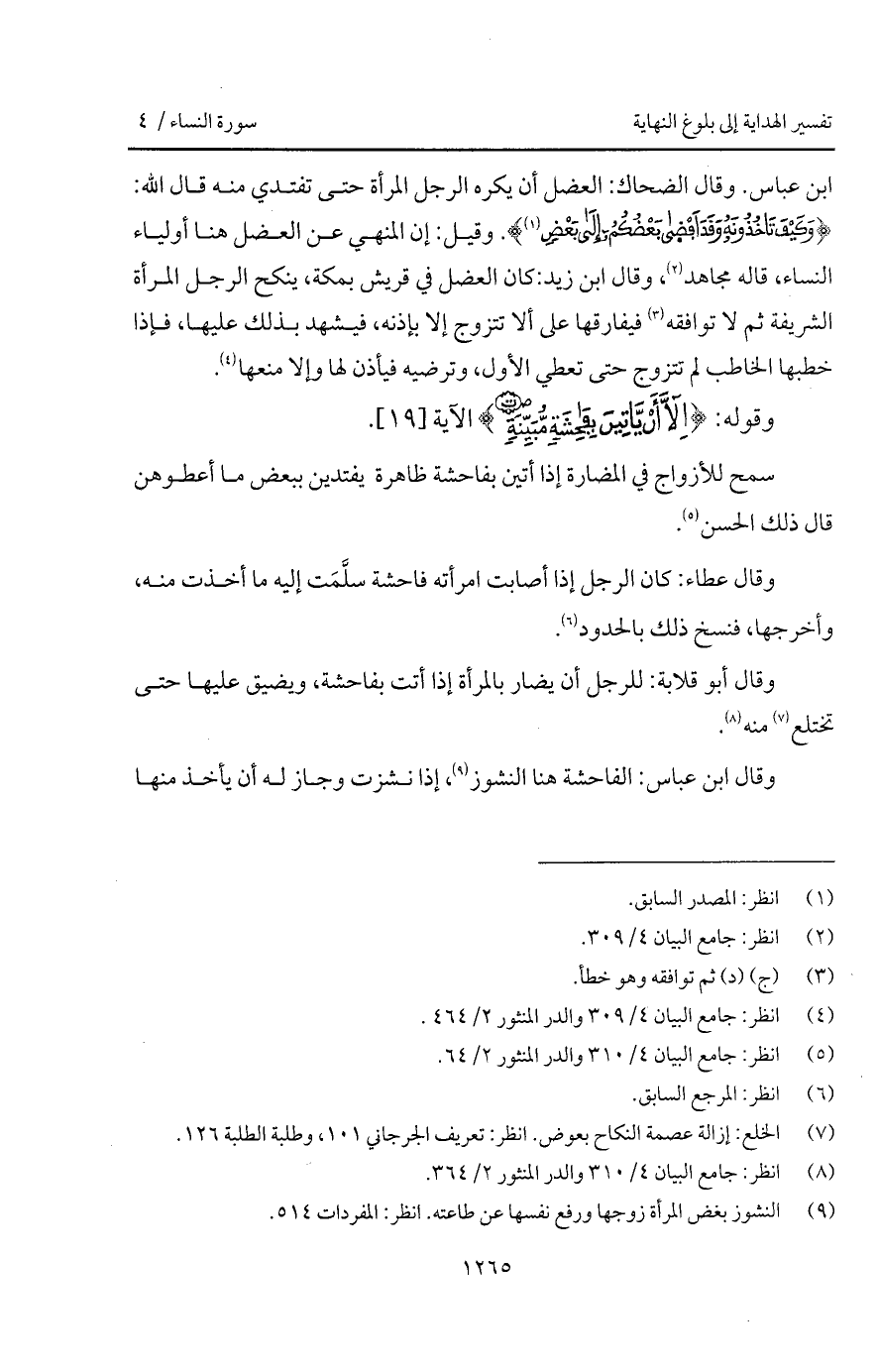 سمح للأزواج في المضارة إذا أتين بفاحشة ظاهرة يفتدين ببعض ما أعطوهن قال ذلك الحسن.