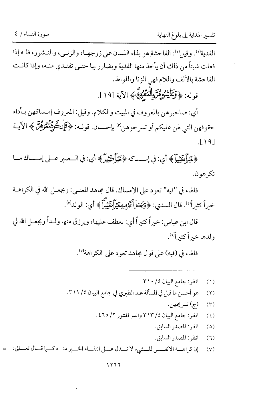 أي: صاحبوهن بالمعروف في المبيت والكلام. وقيل: المعروف إمساكهن بأداء حقوقهن التي لهن عليكم أو تسرحوهن بإحسان. قوله: {فَإِن كَرِهْتُمُوهُنَّ} الآية.