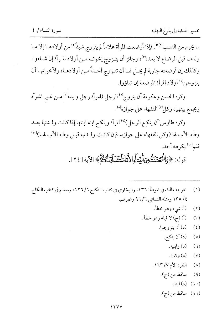 ما يحرم من النسب " فإذا أرضعت المرأة غلاماً بم يتزوج شيئاً من أولادها إلا ما ولدت قبل الرضاع لا بعده، وجائز أن يتزوج إخوته من أولاد المرأة إن شاءوا. وكذلك إن أرضعته جارية لم يحل لها أن تتزوج أحداً من أولادها، ولأخواتها أن يتزوجن أولاد المرأة المرضعة إن شاؤوا.
