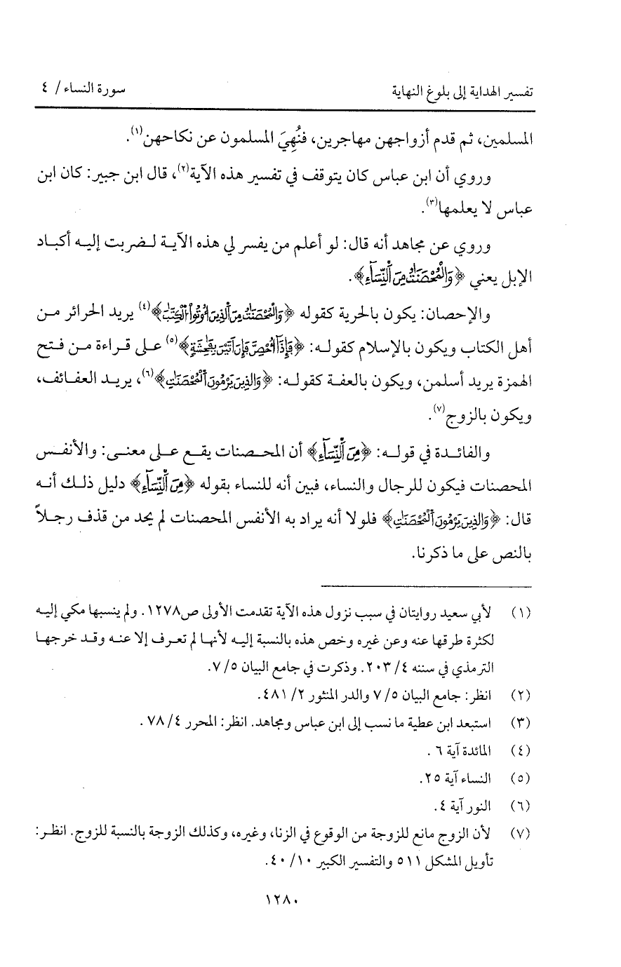 وروي عن مجاهد أنه قال: لو أعلم من يفسر لي هذه الآية لضربت إ'ليه أكباد الإبل يعني {والمحصنات مِنَ النسآء}.