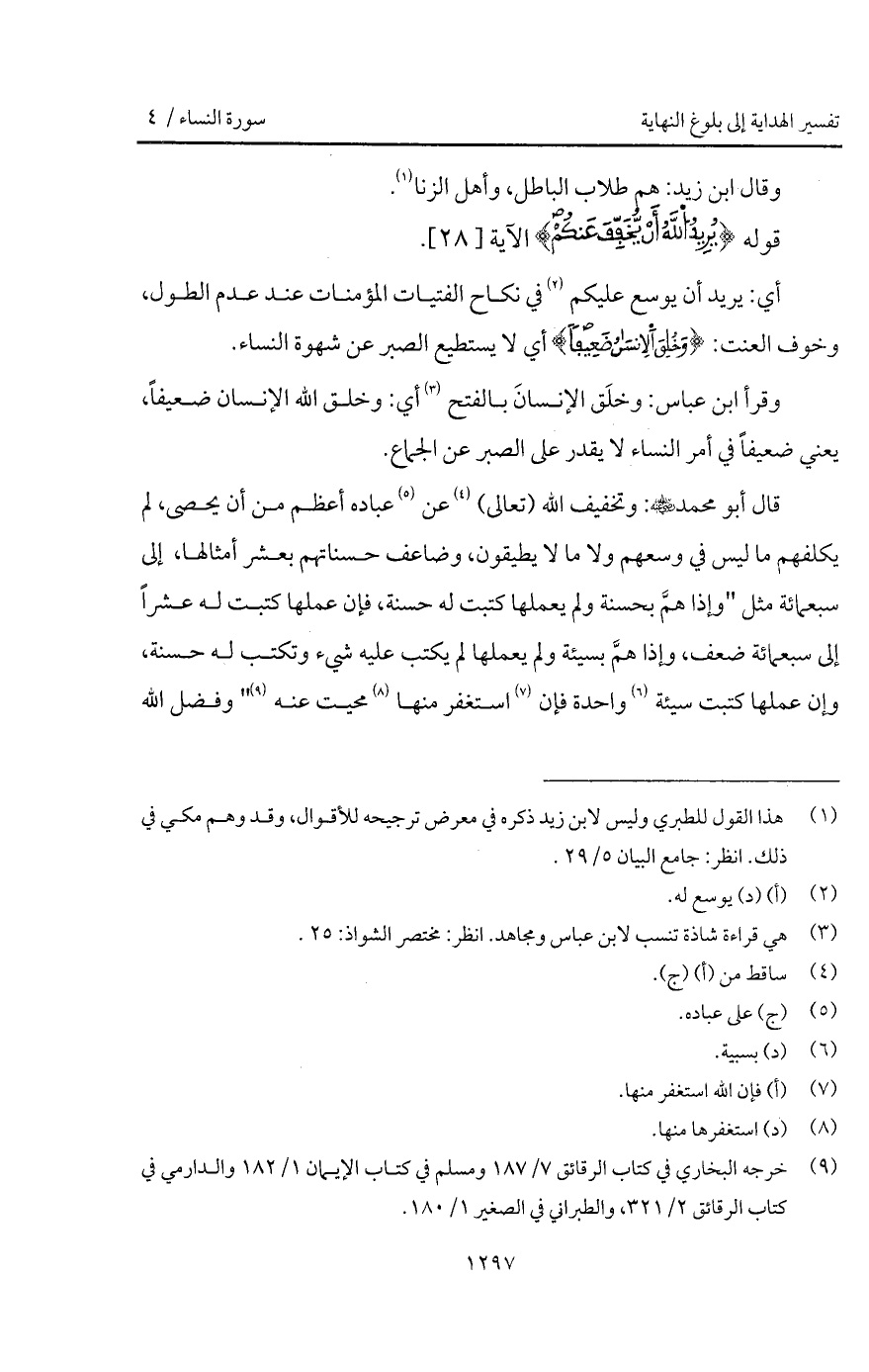 قال أبو محمد Bهـ: وتخفيف الله (تعالى) عن عباده أعظم من أن يحصى، لم يكلفهم ما ليس في وسعهم ولا ما يطيقون، وضاعف حسناتهم بعشر أمثالها، إلى سبعمائة مثل " وإذا همَّ بحسنة ولم يعملها كتبت له حسنة، فإن عملها كتبت له عشراً إلى سبعمائة ضعف، وإذا همَّ بسيئة ولم يعملها لم يكتب عليه شيء وتكتب له حسنة، وإن عملها كتبت سيئة واحدة فإن استغفر منها محيت عنه " وفضل الله