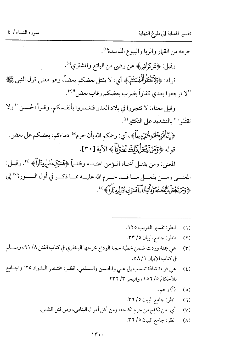 قوله: {وَلاَ تقتلوا أَنْفُسَكُمْ} أي: لا يقتل بعضكم بعضاً، وهو معنى قول النبي A " لا ترجعوا بعدي كفاراً يضرب بعضكم رقاب بعض ".
