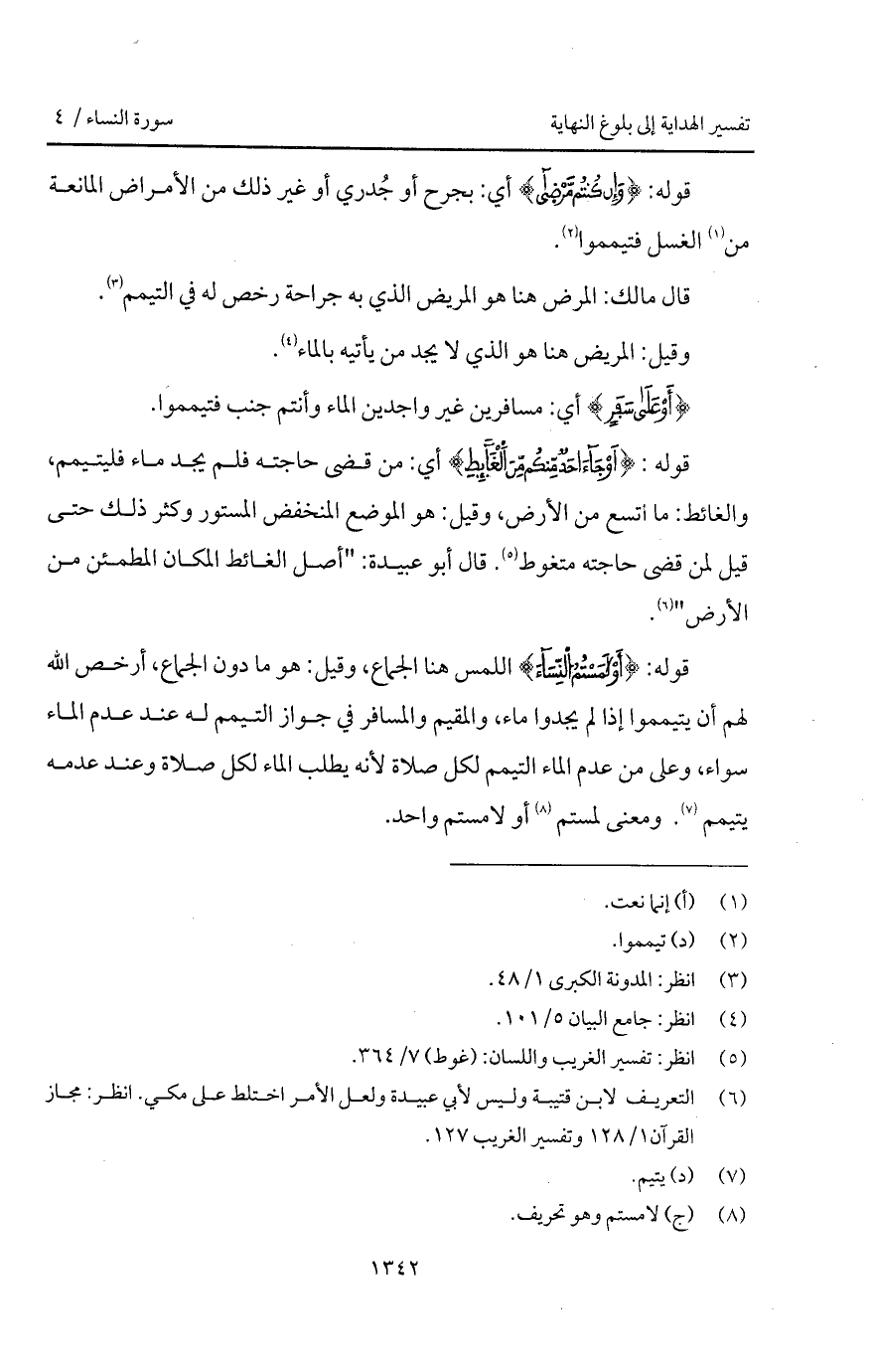 قةله: {أَوْ لامستم النسآء} اللمس هنا الجماع، وقيل: هو ما دون الجماع، أرخص الله لهم أن يتيمموا إذا لم يجدوا ماء، والمقيم والمسافر في جواز التيمم له عند عدم الماء سواء، وعلى من عدم الماء التيمم لكل صلاة لأنه يطلب الماء لكل صلاة وعند عدمه يتيمم. ومعنى لمستم أو لامستم واحد.