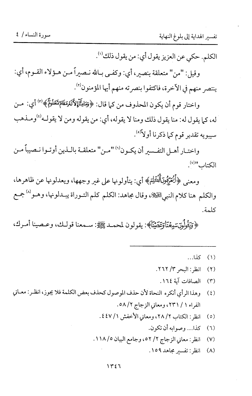 ومعنى {يُحَرِّفُونَ الكلم} أي: يتأولونها على غير وجهها، ويعدلونها عن ظاهرها، والكلم هنا كلام النبي عليه السلام، وقال مجاهد: الكلم كلم التوراة يبدلونها، وهو جمع كلمة.