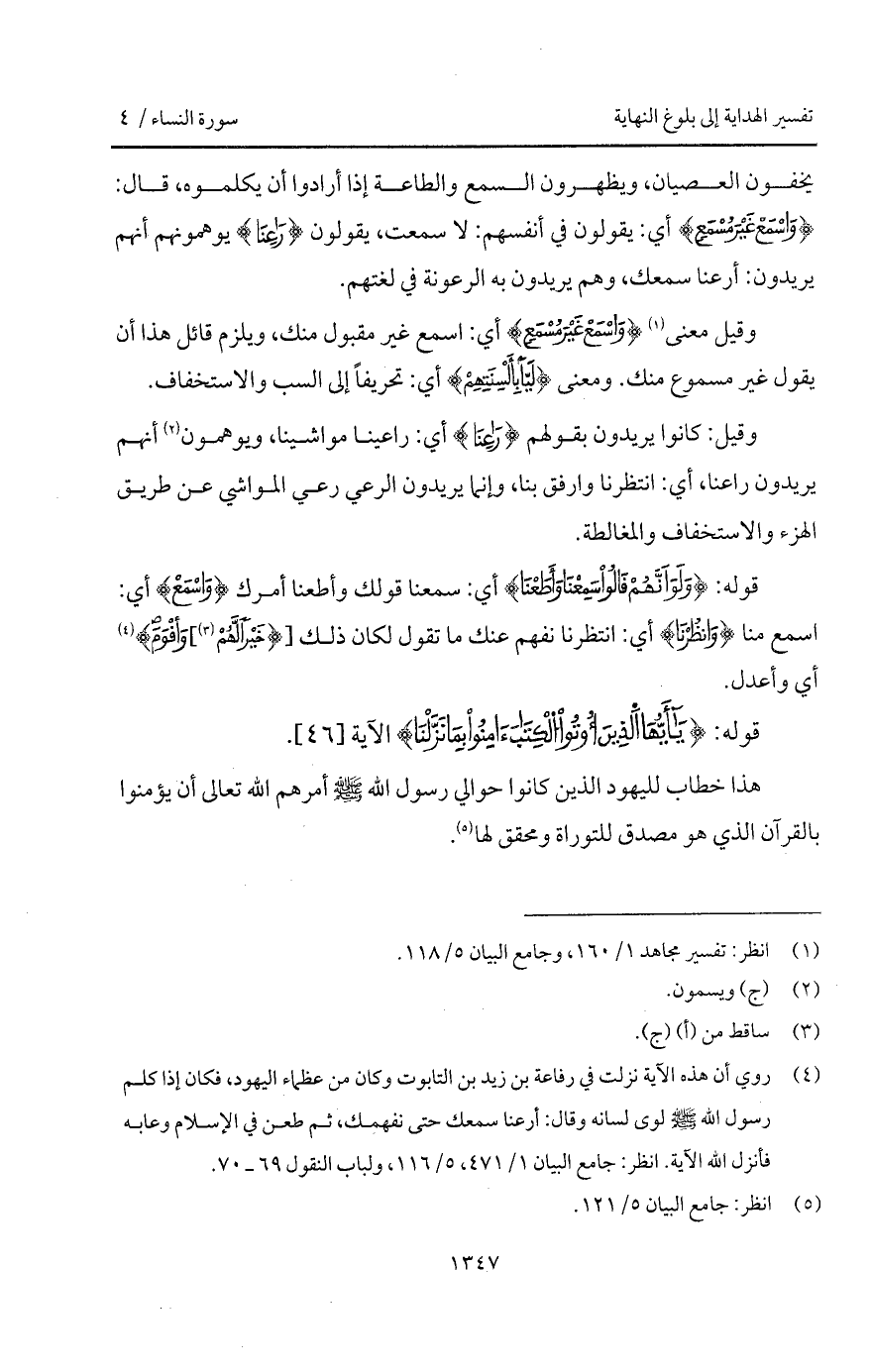 يخفون العصيان، ويظهرون السمع والطاعة إذا أرادوا أن يكلموه، قال: {واسمع غَيْرَ مُسْمَعٍ} أي: يقولون في أنفسهم: لا سمعت، يقولون {راعنا} يوهمونهم أنهم يريدون: أرعنا سمعك، وهم يريدون به الرعونة في لغتهم.