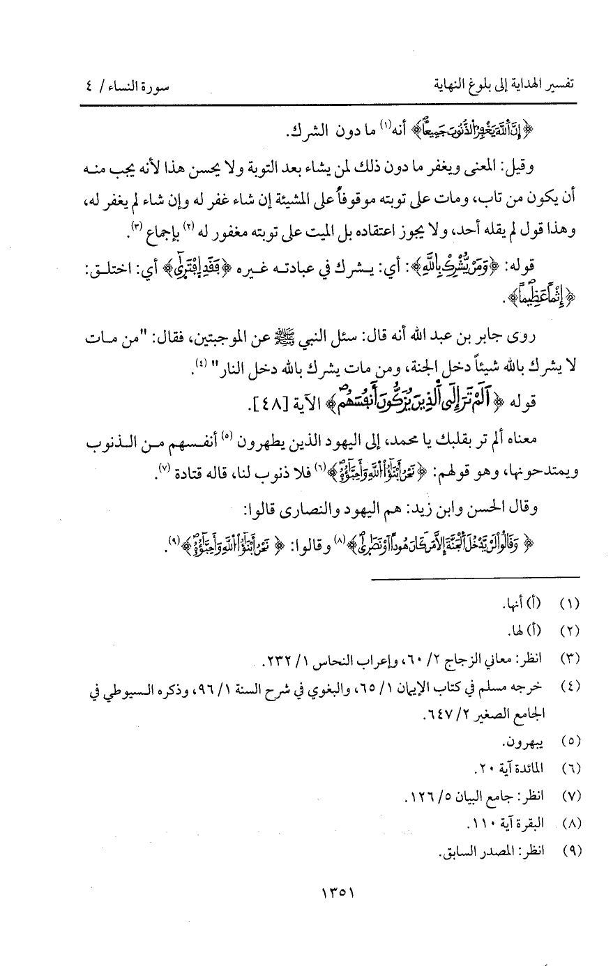 وقيل: المعنى ويغفر ما دون ذلك لمن يشاء بعد التوبة ولا يحسن هذا لأنه يجب منه أن يكون من تاب، ومات على توبته موقوفاً على المشيئة إن شاء غفر له وإن شاء لم يغفر له، وهذا قول لم يقله أحد، ولا يجوز اعتقاده بل الميت على توبته مغفور له بإجماع.