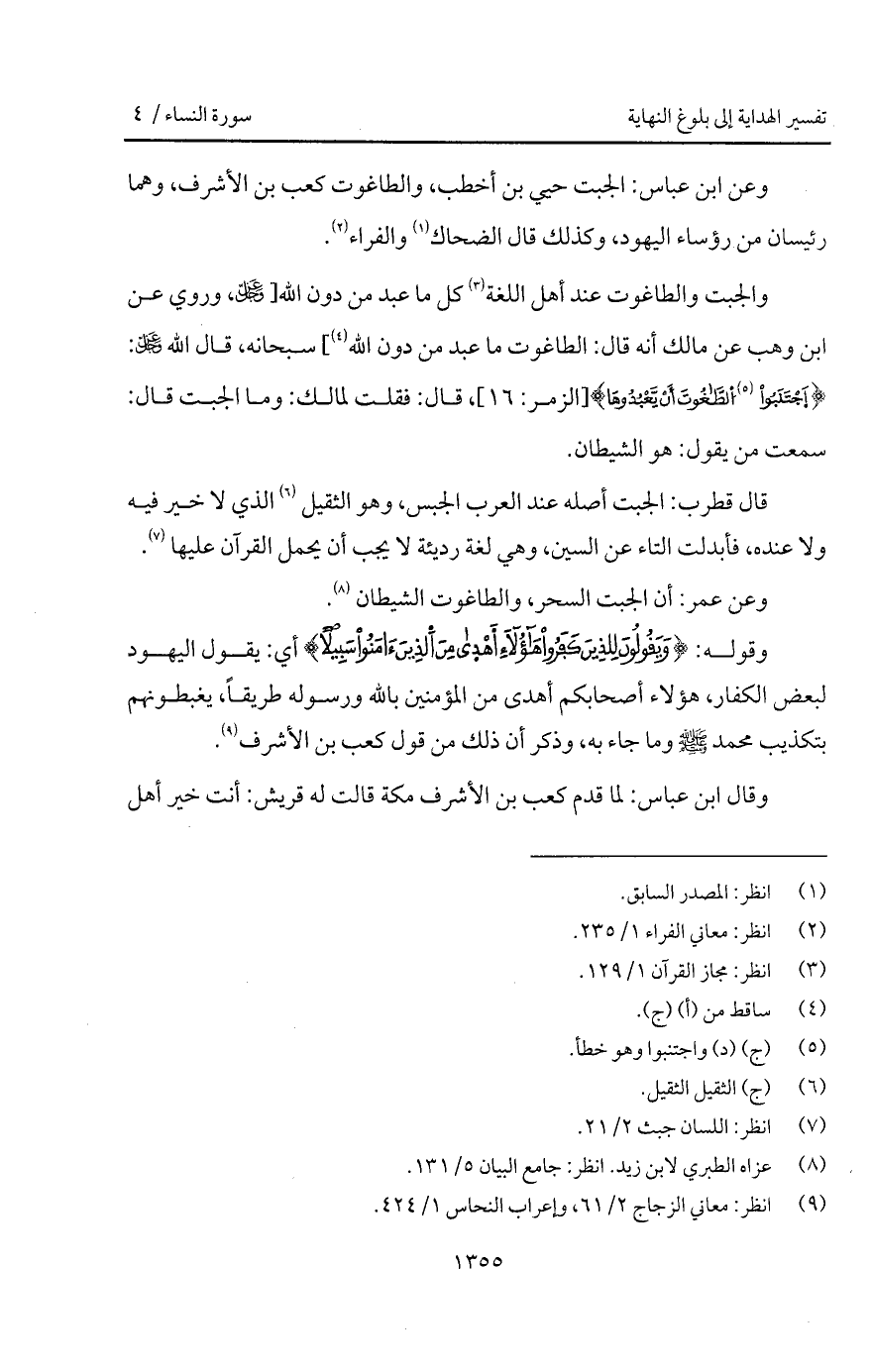 قال قطرب: الجبت أصله عند العرب الجبس، وهو الثقيل الذي لا خير فيه ولا عنده، فأبدلت التاء عن السين، وهي لغة رديئة لا يجب أن يحمل القرآن عليها.