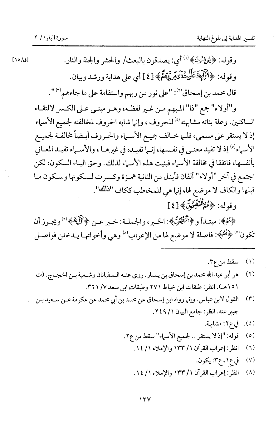 قال محمد بن إسحاق: " على نور من ربهم واستقامة على ما جاءهم ".