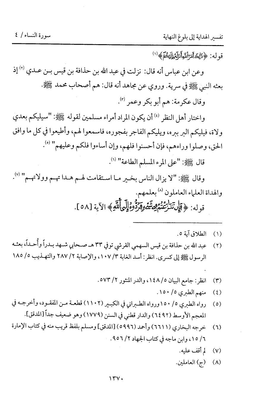 وعن ابن عباس أنه قال: نزلت في عبد الله بن حذافة بن قيس بن عدي إذ بعثه النبي A في سرية. وروي عن مجاهد أنه قال: هم أصحاب محمد A.