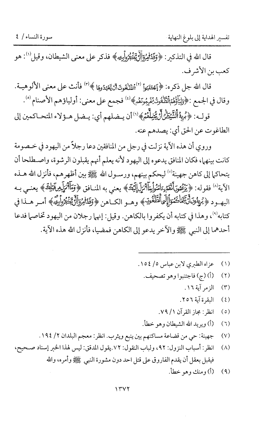 وروي أن هذه الآية نزلت في رجل من المنافقين دعا رجلاً من اليهود في خصومة كانت بينهما، فكان المنافق يدعوه إلى اليهود لأنه يعلم أنهم يقبلون الرشوة، واصطلحا أن يتحاكما إلى كاهن جهينة ليحكم بينهم، ورسول الله A بين أظهرهم، فأنزل الله هذه الآية فقوله: {يَزْعُمُونَ أَنَّهُمْ آمَنُواْ بِمَآ أُنْزِلَ إِلَيْكَ} يعني به المنافق {وَمَآ أُنزِلَ مِن قَبْلِكَ} يعني به اليهود {يُرِيدُونَ أَن يتحاكموا إِلَى الطاغوت} وهو الكاهن {وَقَدْ أمروا أَن يَكْفُرُواْ بِهِ} أمر هذا في كتابه، وهذا في كتابه أن يكفروا بالكاهن. وقيل: إنهما رجلان من اليهود تخاصما فدعا أحدهما إلى النبي A والآخر يدعو إلى الكاهن فمضيا، فأنزل الله هذه الآية.