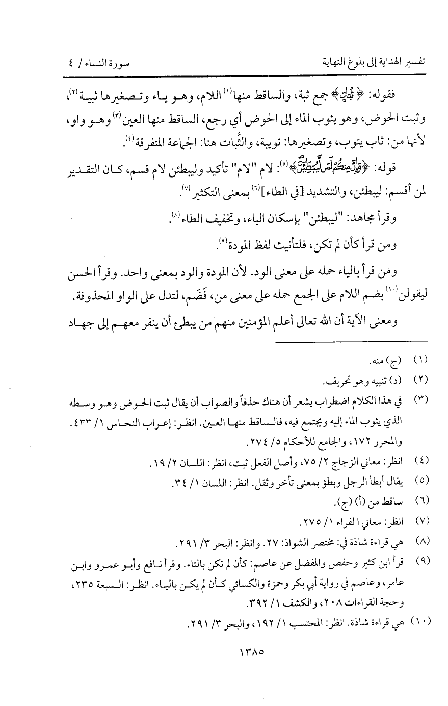 قوله: {وَإِنَّ مِنْكُمْ لَمَن لَّيُبَطِّئَنَّ}: لام " لام " تأكيد وليبطئن لام قسم، كان التقدير لمن أقسم: ليبطئن، والتشديد [في الطاء] بمعنى التكثير.