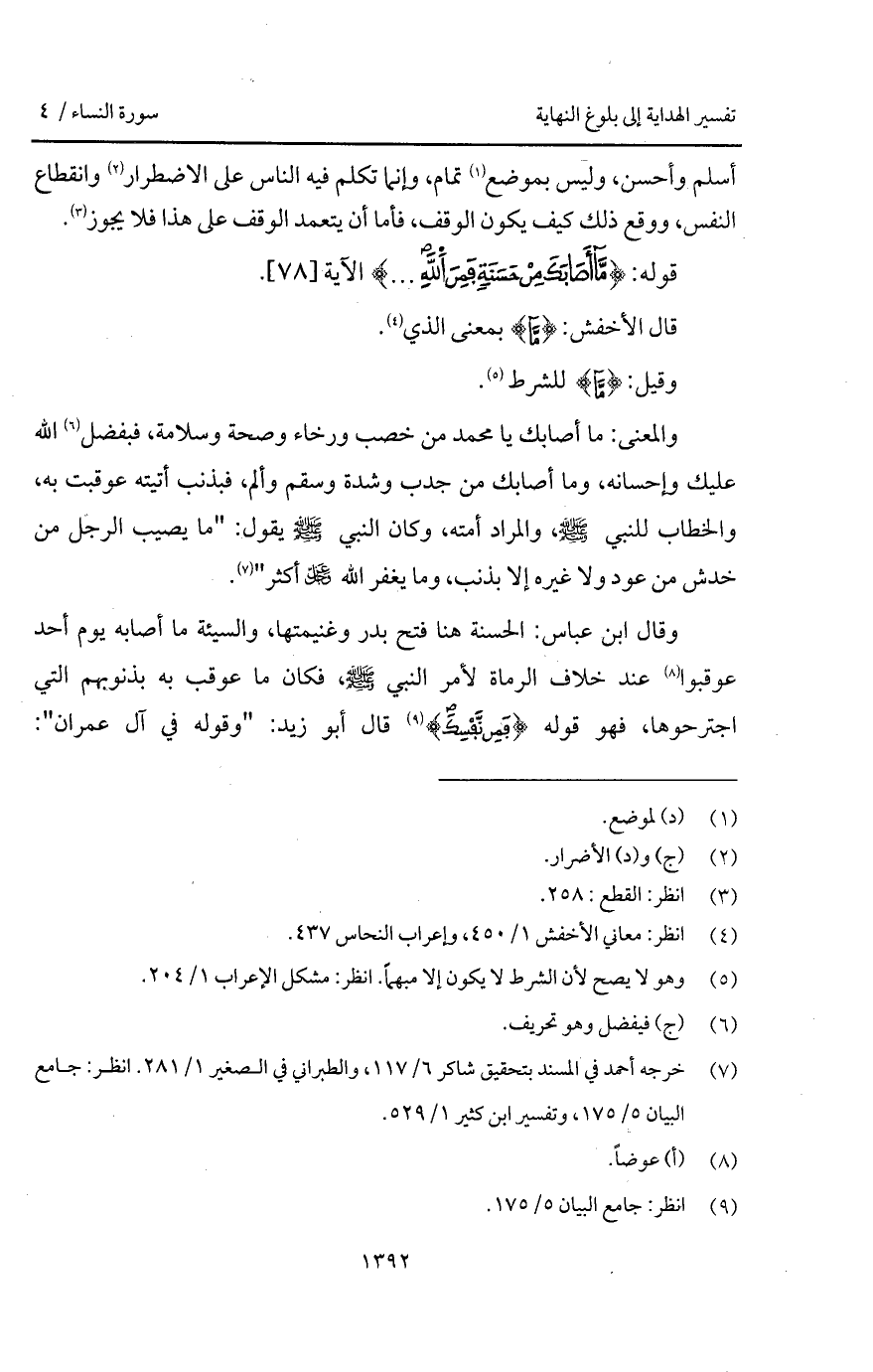 قوله: {مَّآ أَصَابَكَ مِنْ حَسَنَةٍ فَمِنَ الله. . .} الآية.