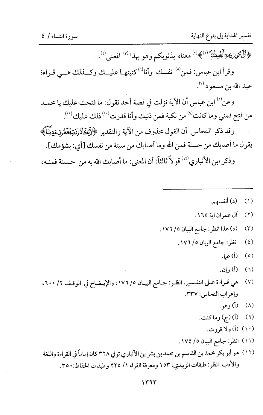 وقد ذكر النحاس: أن القول محذوف من الآية والتقدير {لاَ يَكَادُونَ يَفْقَهُونَ حَدِيثاً} يقول ما أصابك من حسنة فمن الله وما أصابك من سيئة من نفسك [أي: بشؤمك].