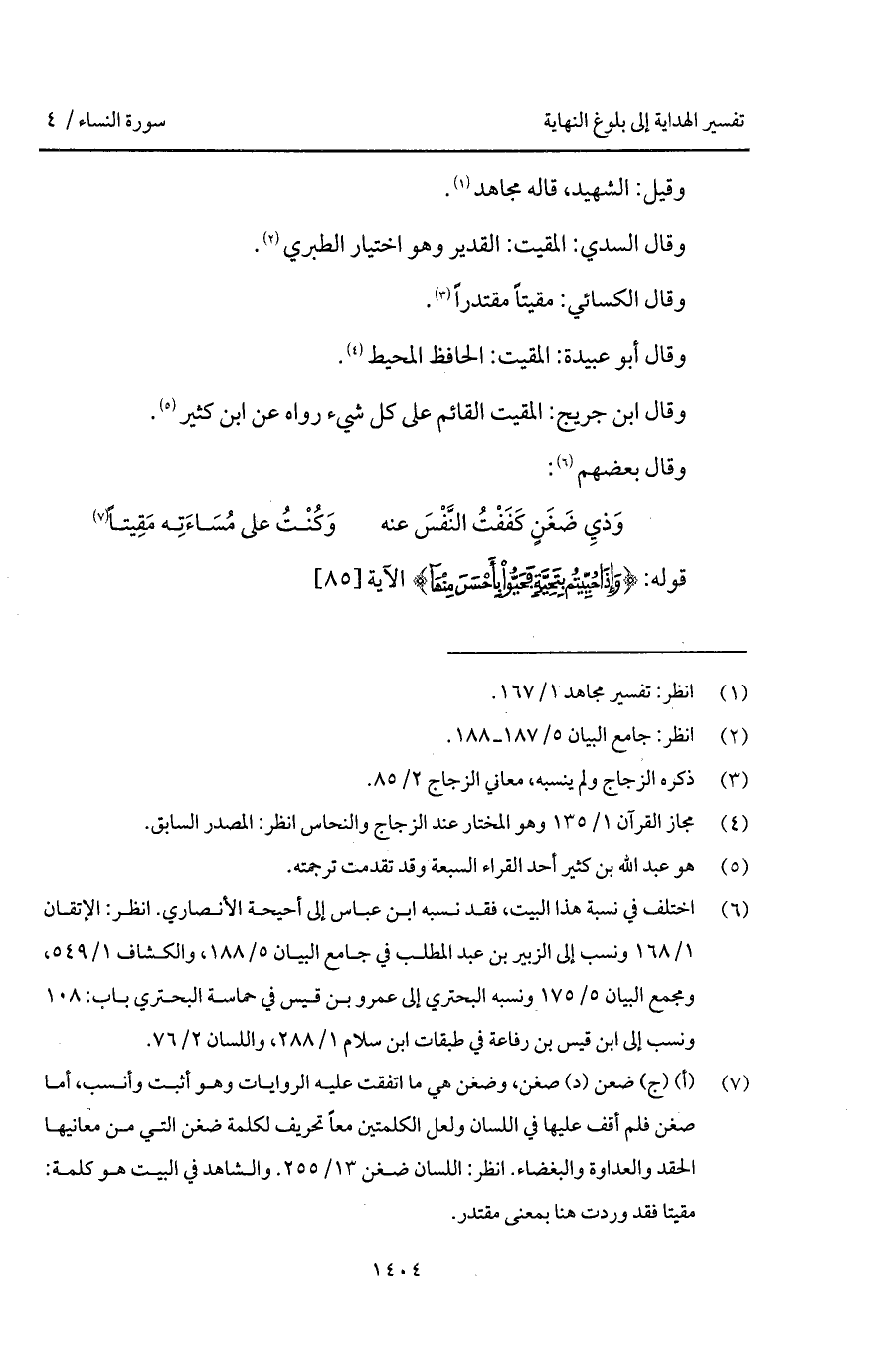 وقال أبو عبيدة: المقيت: الحافظ المحيط.