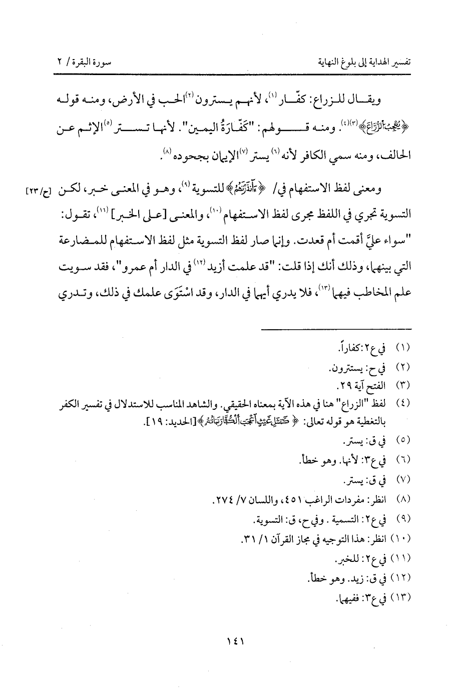 ويقال للزراع: كفّار، لأنهم يسترون الحب في الأرض، ومنه قوله {يُعْجِبُ الزراع} {الفتح: 29]. ومنه قولهم: " كَفّارَةُ اليمين ". لأنها تستر الإثم عن الحالف، ومنه سمي الكافر لأنه يستر الإيمان بجحوده.