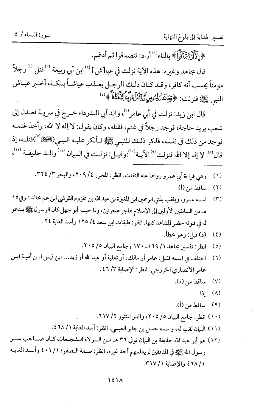 قال مجاهد وغيره: هذه الآية نزلت في عيا [ش] ابن أبي ربيعة قتل رجلاً مؤمناً يحسب أنه كافر، وقد كان ذلك الرجل يعذب عياشاً بمكة، أخبر عياش النبي A فنزلت: {وَمَا كَانَ لِمُؤْمِنٍ أَن يَقْتُلَ مُؤْمِناً إِلاَّ خَطَئاً}.