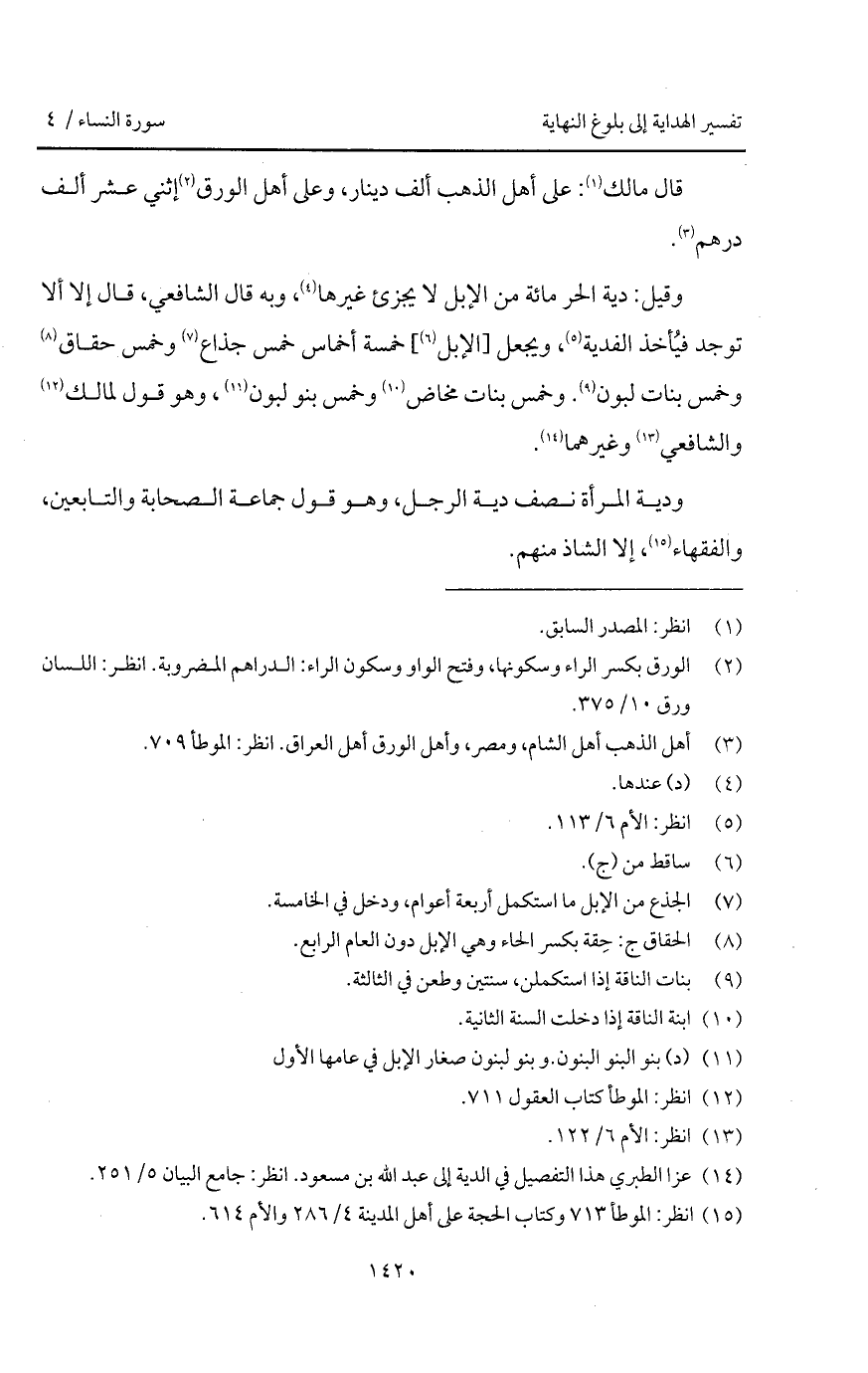 ودية المرأة نصف دية الرجل، وهو قول جماعة الصحابة والتابعين، والفقهاء، إلا الشاذ منهم.