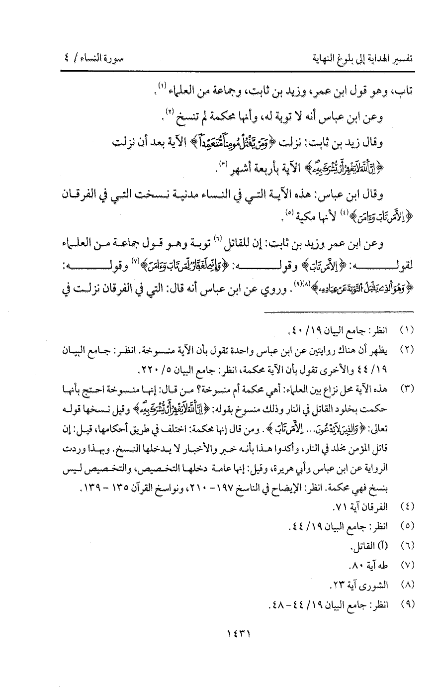 وقال زيد بن ثابت: نزلت {وَمَن يَقْتُلْ مُؤْمِناً مُّتَعَمِّداً} الآية بعد أن نزلت