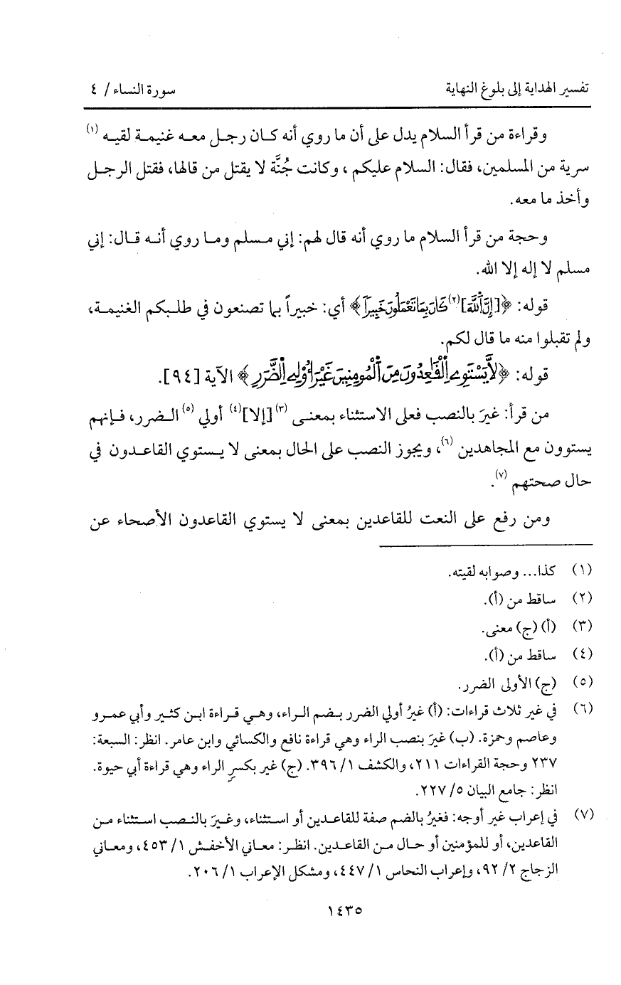 من قرأ: غيرَ بالنصب فعلى الاستثناء بمعنى [إلا] أولي الضرر، فإنهم يستوون مع المجاهدين، ويجوز النصب على الحال بمعنى لا يستوي القاعدون في حال صحتهم.
