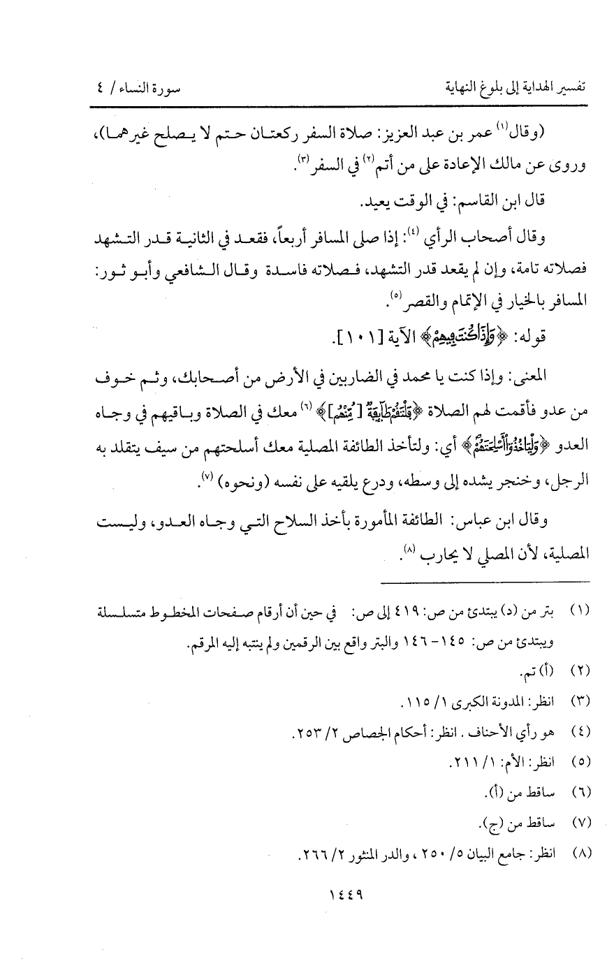 وقال أصحاب الرأي: إذا صلى المسافر أربعاً، فقعد في الثانية قدر التشهد فصلاته تامة، وإن لم يقعد قدر التشهد، فصلاته فاسدة وقال الشافعي وأبو ثور: المسافر بالخيار في الإتمام والقصر.