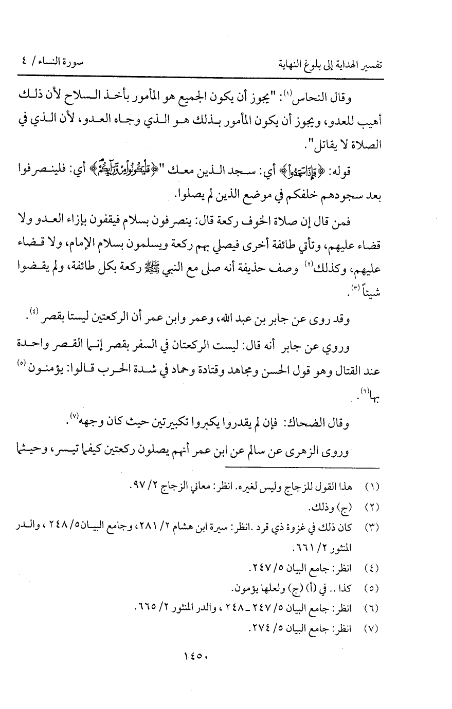 وقال النحاس: " يجوز أن يكون الجميع هو المأمور بأخذ السلام لأن ذلك أهيب للعدو، ويجوز أن يكون المأمور بذلك هو الذي وجاه العدو، لأن الذي في الصلاة لا يقاتل ".