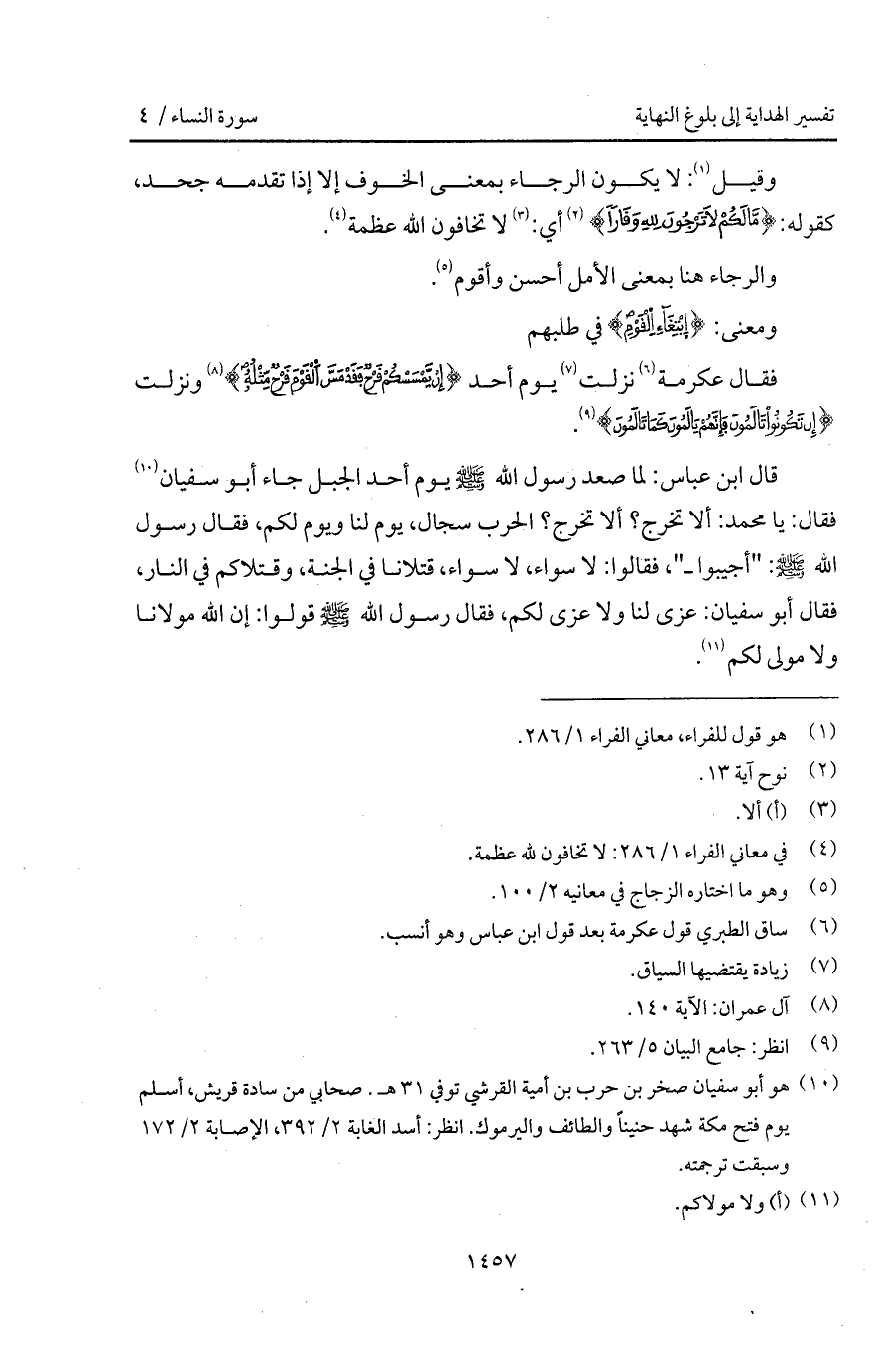 فقال عكرمة نزلت يوم أحد {إِن يَمْسَسْكُمْ قَرْحٌ فَقَدْ مَسَّ القوم قَرْحٌ مِّثْلُهُ} [آل عمران: 140] ونزلت {إِن تَكُونُواْ تَأْلَمُونَ فَإِنَّهُمْ يَأْلَمُونَ كَمَا تَأْلَمونَ}.