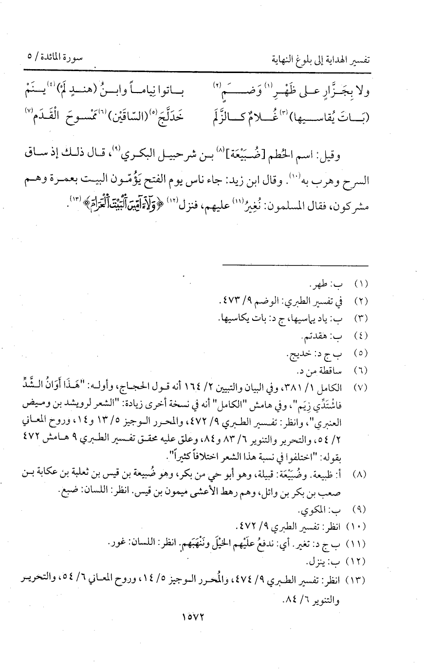 وقيل: اسم الحُطم [ضُبَيْعَة] بن شرحبيل البكري، قال ذلك إذ ساق السرح وهرب به. وقال ابن زيد: جاء ناس يوم الفتح يَؤُمّون البيت بعمرة وهم مشركون، فقال المسلمون: نُغِيرُ عليهم، فنزل {ولا آمِّينَ البيت الحرام}.