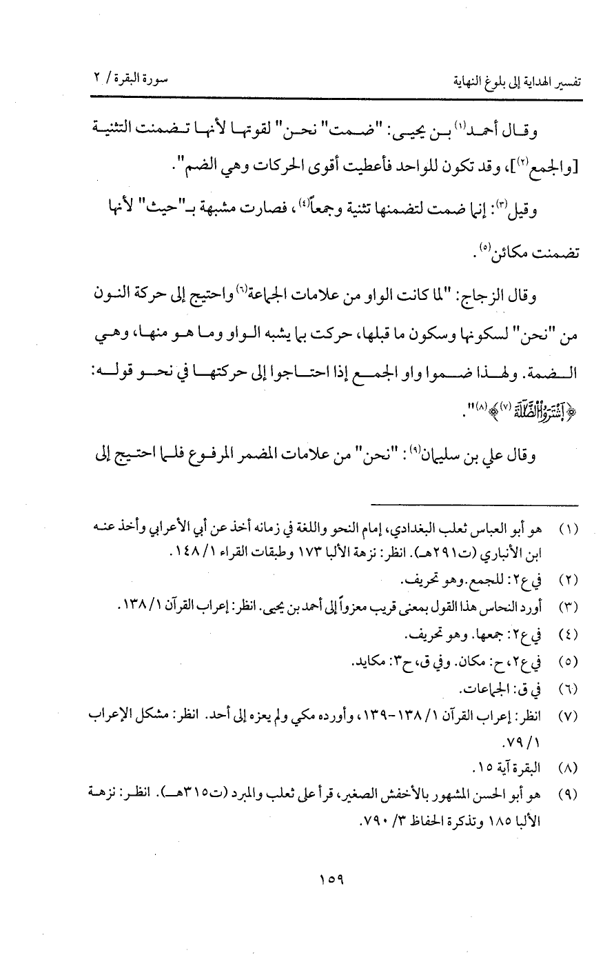 وقال أحمد بن يحيى: " ضمت " نحن " لقوتها لأنها تضمنت التثنية [والجمع]، وقد تكون للواحد فأعطيت أقوى الحركات وهي الضم ".