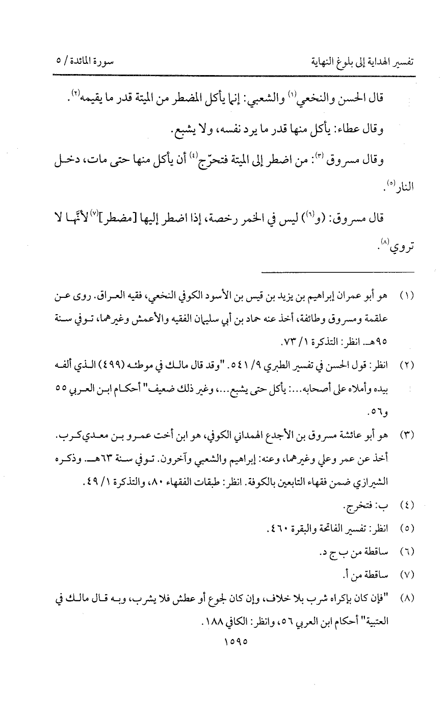 وقال مسروق: من اضطر إلى الميتة فتحرّج أن يأكل منها حتى مات، دخل النار.