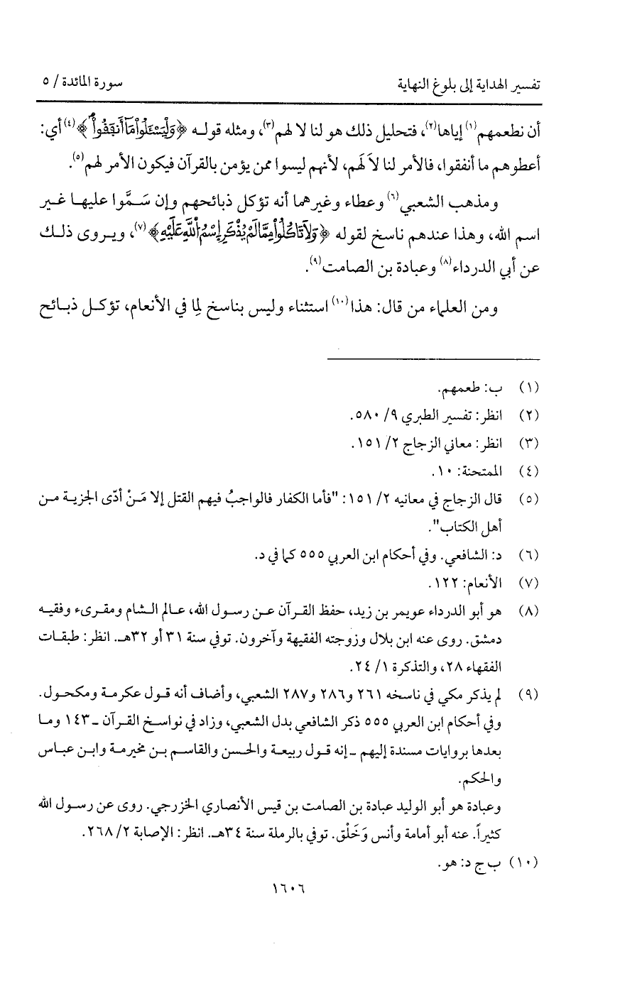 ومذهب الشعبي وعطاء وغيرهما أنه تؤكل ذبائحهم وإن سَمَّوا عليها غير اسم الله، وهذا عندهم ناسخ لقوله {وَلاَ تَأْكُلُواْ مِمَّا لَمْ يُذْكَرِ اسم الله عَلَيْهِ} [الأنعام: 121]، ويروى ذلك عن أبي الدرداء وعبادة بن الصامت.