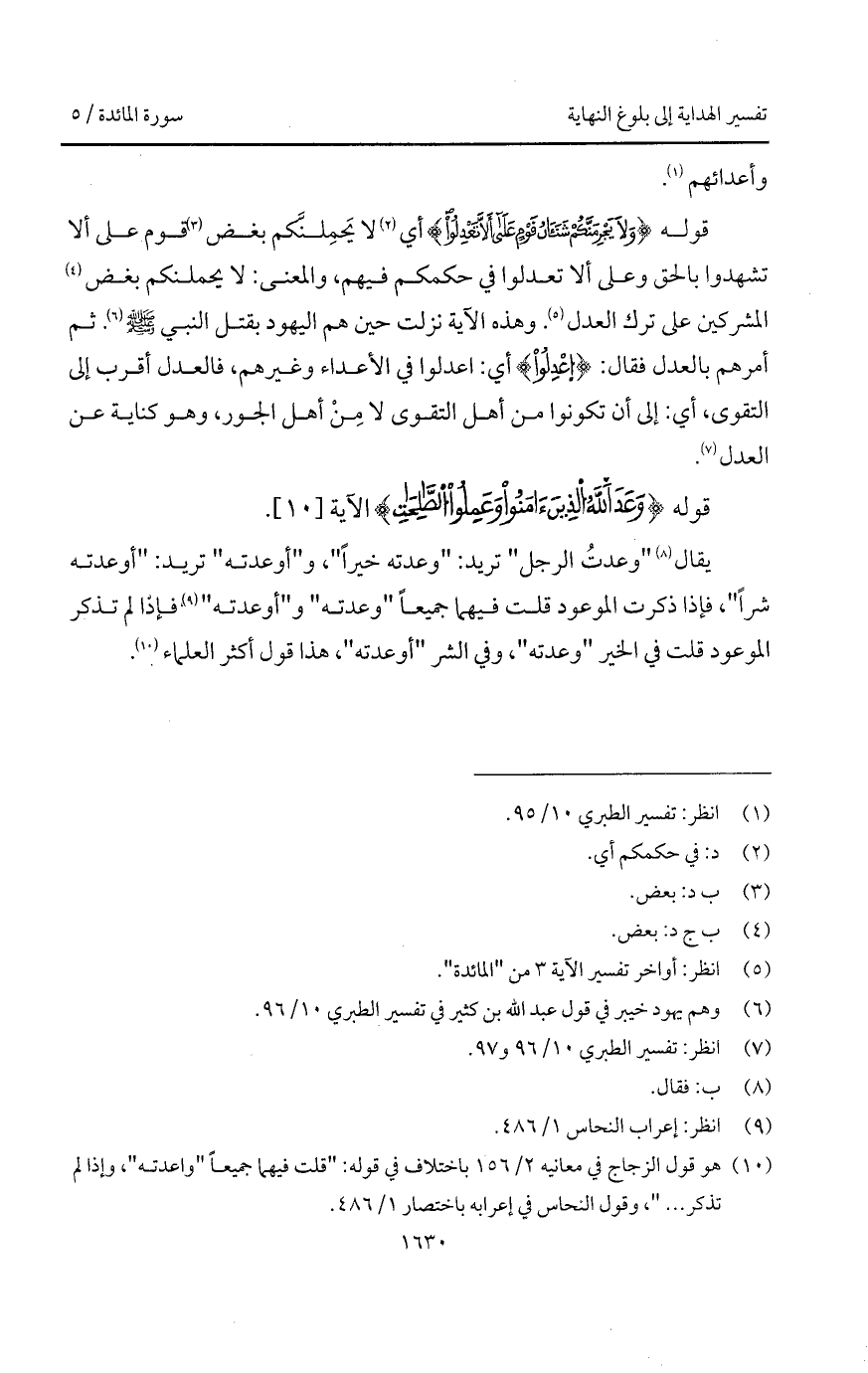 قوله {وَلاَ يَجْرِمَنَّكُمْ شَنَآنُ قَوْمٍ على أَلاَّ تَعْدِلُواْ} أي لا يَحمِلنَّكم بغض قوم على ألا تشهدوا بالحق وعلى ألا تعدلوا في حكمكم فيهم، والمعنى: لا يحملنكم بغض المشركين على ترك العدل. وهذه الآية نزلت حين هم اليهود بقتل النبي A. ثم أمرهم بالعدل فقال: {اعدلوا} أي: اعدلوا في الأعداء وغيرهم، فالعدل أقرب إلى التقوى، أي: أن تكونوا من أهل التقوى لا مِنْ أهل الجور، وهو كناية عن العدل.