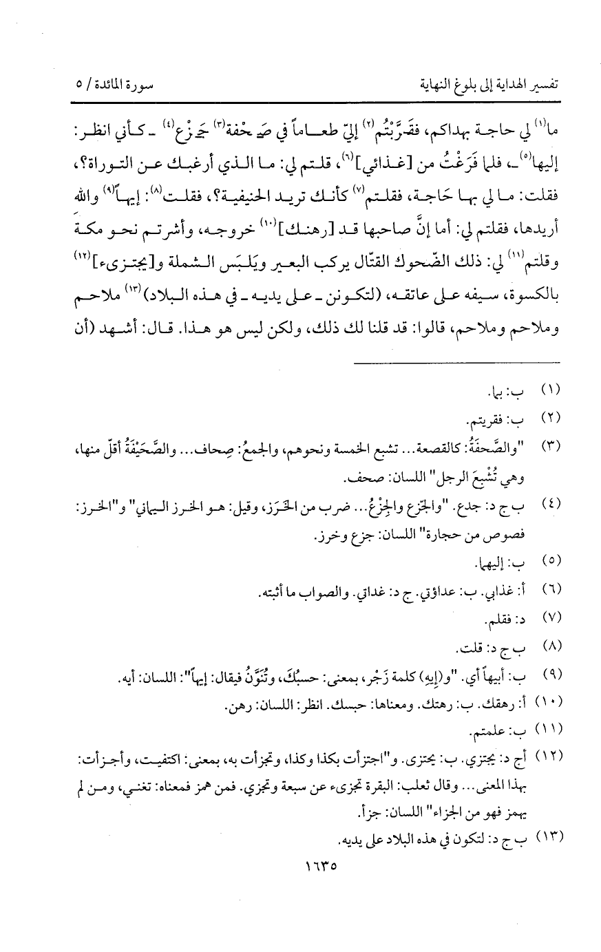 ما لي حاجة بهداكم، فقَرَّبْتُم إليّ طعاماً في صَحْفة جَزْع - كأني انظر: إليها -، فلما فَرَغْتُ من [غذائي]، قلتم لي: ما الذي أرغبك عن التوراة؟، فقلت: ما لي بها حَاجة، فقلتم كأنك تريد الحنيفية؟، فقلت: إيهاً والله أريدها، فقلتم لي: أما إنَّ صاحبها قد [رهنك] خروجه، وأشرتم نحو مكةَ وقلتم لي: ذلك الضّحوك القتّال يركب البعير ويَلبَس الشملة و [يجتزئ] بالكسوة، سيفه على عاتقه، (لتكونن - على يديه - في هذه البلاد) ملاحم وملاحم وملاحم، قالوا: قد قلنا لك ذلك، ولكن ليس هو هذا.