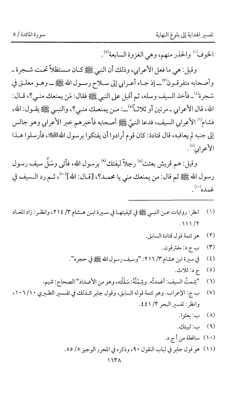 وقيل: " هم قريش بعثت رجلاً ليفتك برسول الله، فأتى وسَلَّ سيف رسول الله A ثم قال: من يمنعك مني يا محمد؟، [قال: الله]، ثم رد السيف في غمده ".