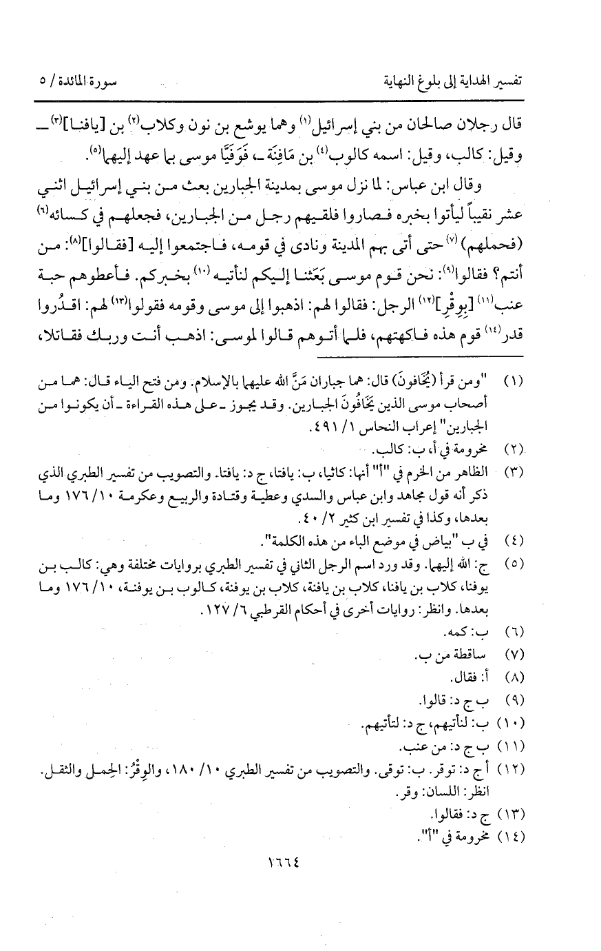 قال رجلان صالحان من بني إسرائيل وهما يوشع بن نون وكلاب بن [يافنا]- وقيل: كالب، وقيل: اسمه كالوب بن مَافِنَة - فَوَفَيَّا موسى بما عهد إليهما.